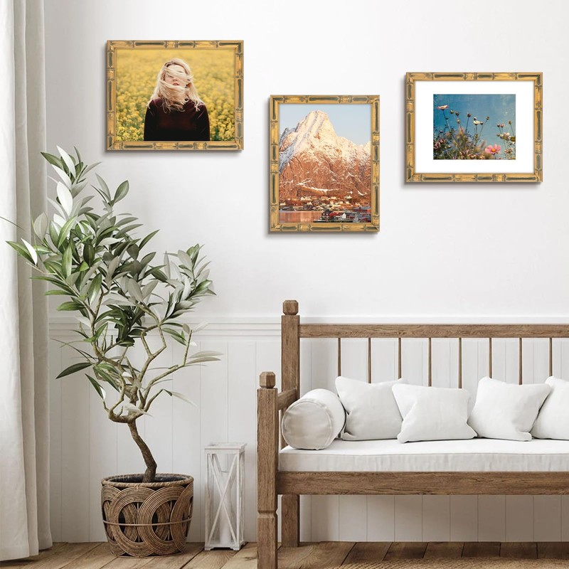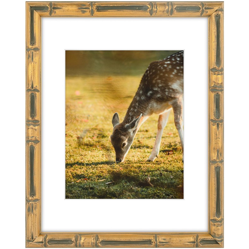 Space Art Deco, 11x14 Bamboo Style Picture Frame with White Mat for 8x10 Photo,Color Gold with Dark (Plexi Glass)