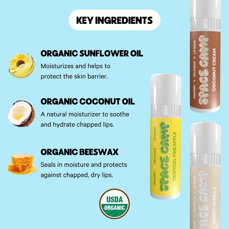 Space Camp Wellness Jumbo Lip Balm - Pool Club Pack Variety Flavored Balm (Tropical Pineapple, Sweet Vanilla, and Coconut Cream) - 3 Pack