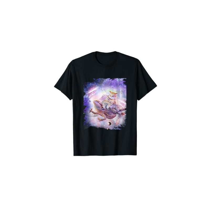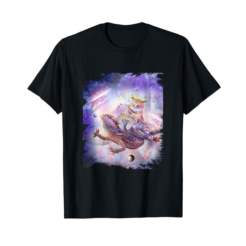 Space Cat Riding Bearded Dragon Lizard T-Shirt