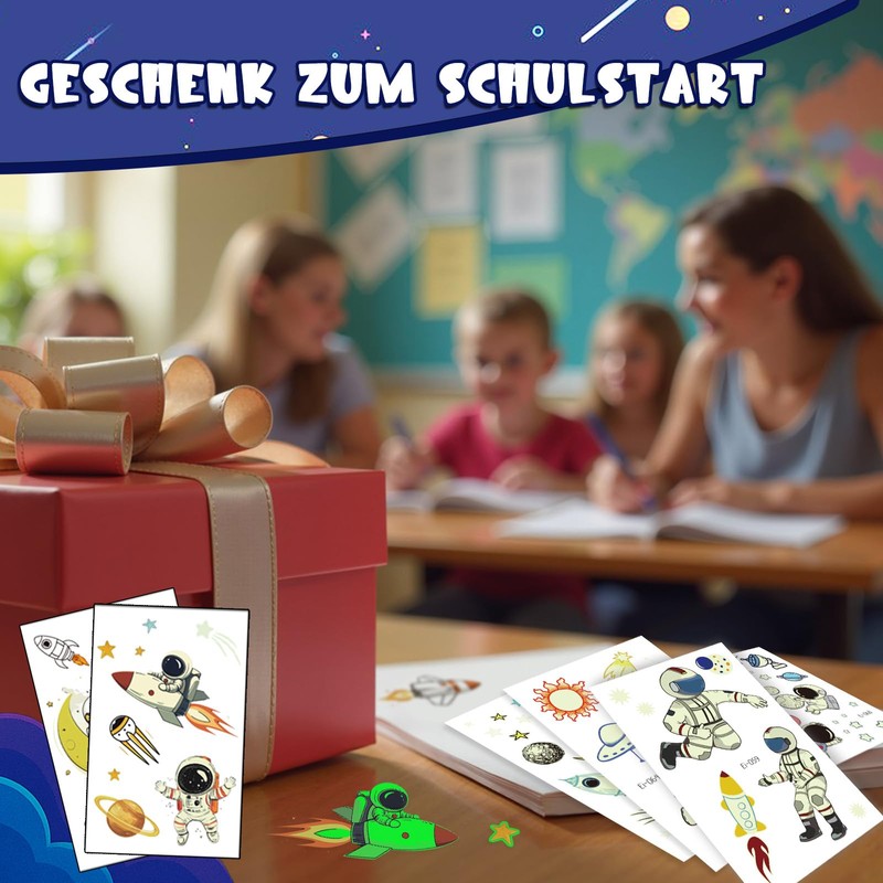 - Great gift for little explorers: whether for the start of school, for the first day of school, for space themed parties or simply as a loving extra in everyday life: these tattoos make children's eyes light up and make every gift set special.