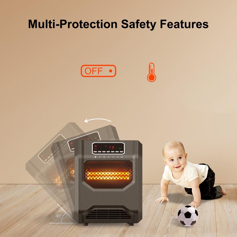 - Portable Heater: Tip over protection shut off the space heater when knocked over, which is very safety for children and pets. The overheat protection will automatically shut off the heater. Cool touch exterior cabinet. ETL certification, safety tested.