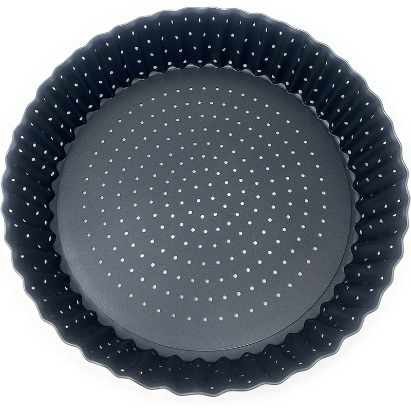 • PERFORATED: Crusty Bake perforated tart tin lets heat circulate for crisper pastry and evenly cooked fillings.