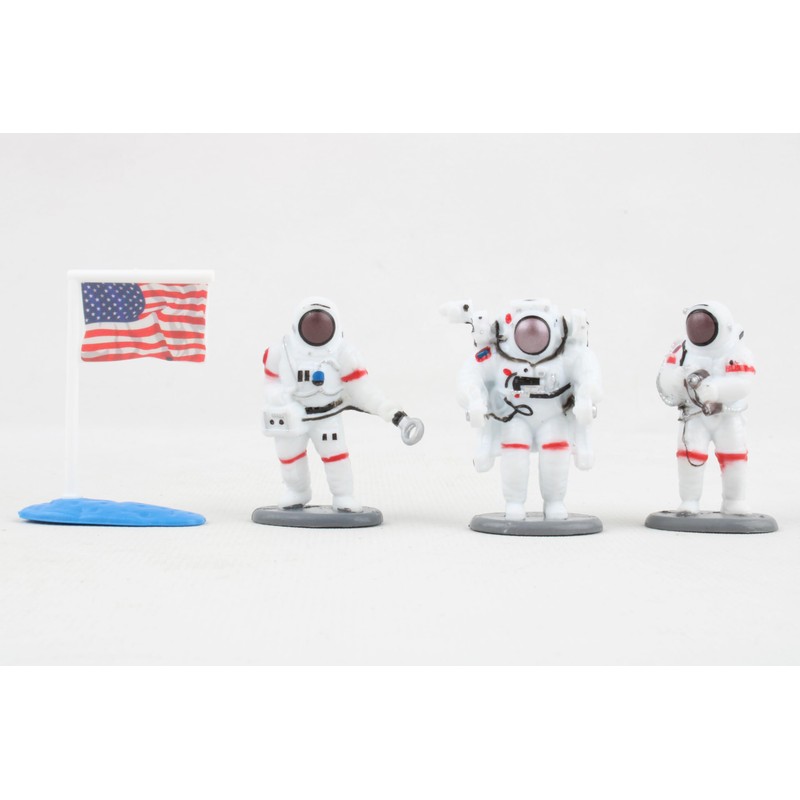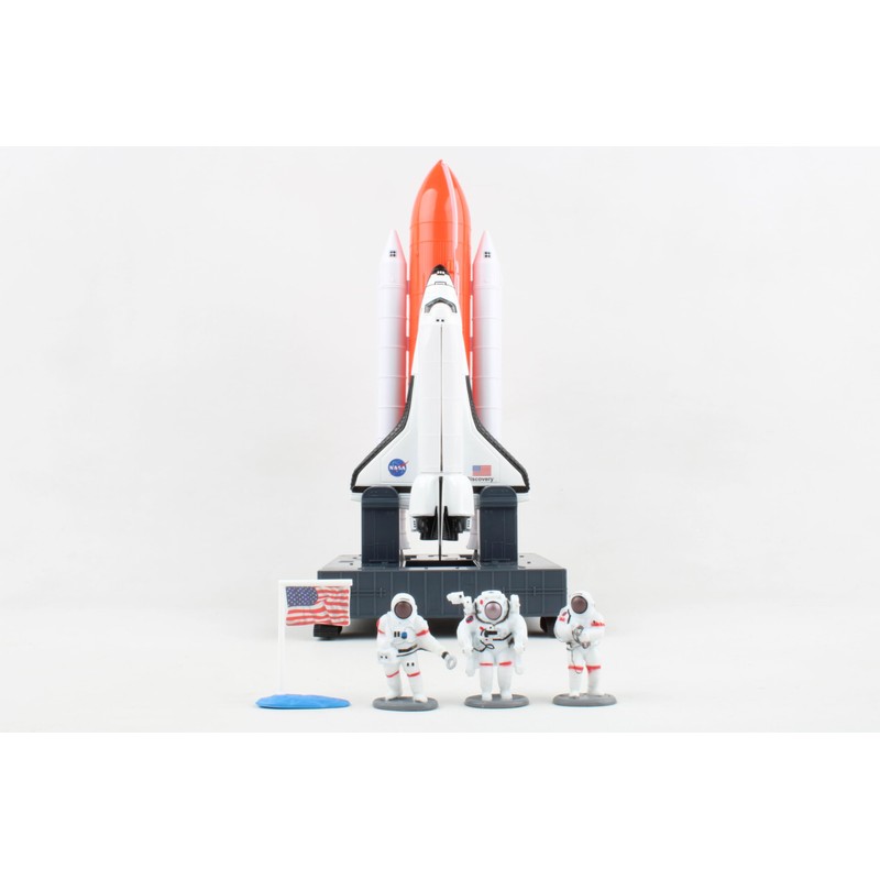 This Space Mission playset has 3 astronauts, American flag, and launch pad with boosters. Shuttle comes off boosters and has bay doors that open. Item is approximately 12 inches tall, 5 inches wide. Ages 3+