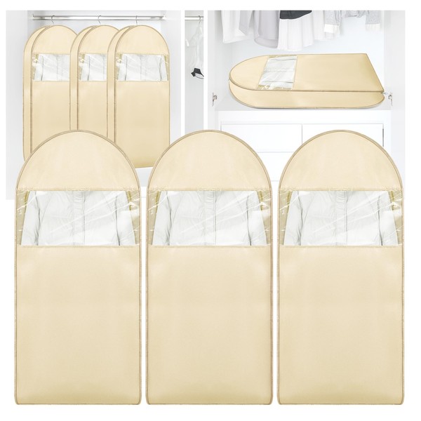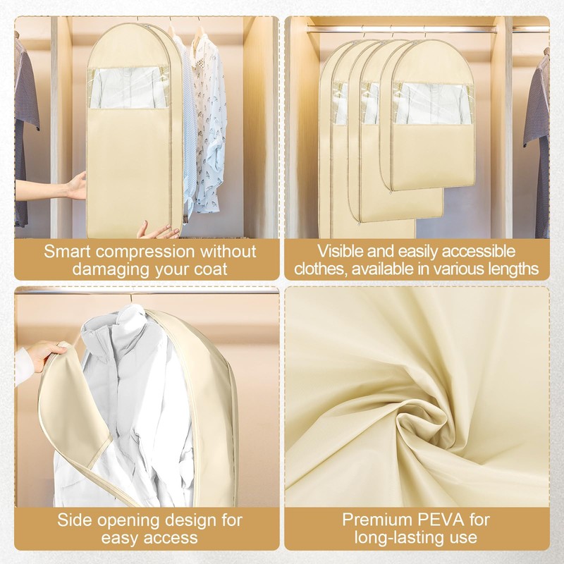 Space Saving Hanging Garment Bag with Self Compression Seal, Large Clear Garment Storage Bags for Jackets and Suits, Closet Bags Clothes (Beige, 3PCS(XL))