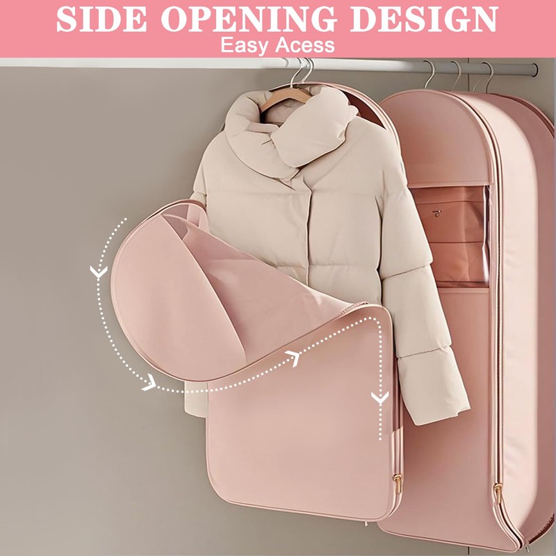 - 【Self-Compression Zipper Garment Bag】Simplify your clothing storage! Our self-compacting zipper technology means no more vacuum cleaner assistance. Simply put in your clothes, zip them up and watch the magic happen. It's that easy to create more space in your closet.