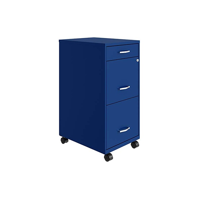 Space Solutions 3 Drawer Metal Mobile File Cabinet with Lock, Letter Size, Blue, Partially Assembled