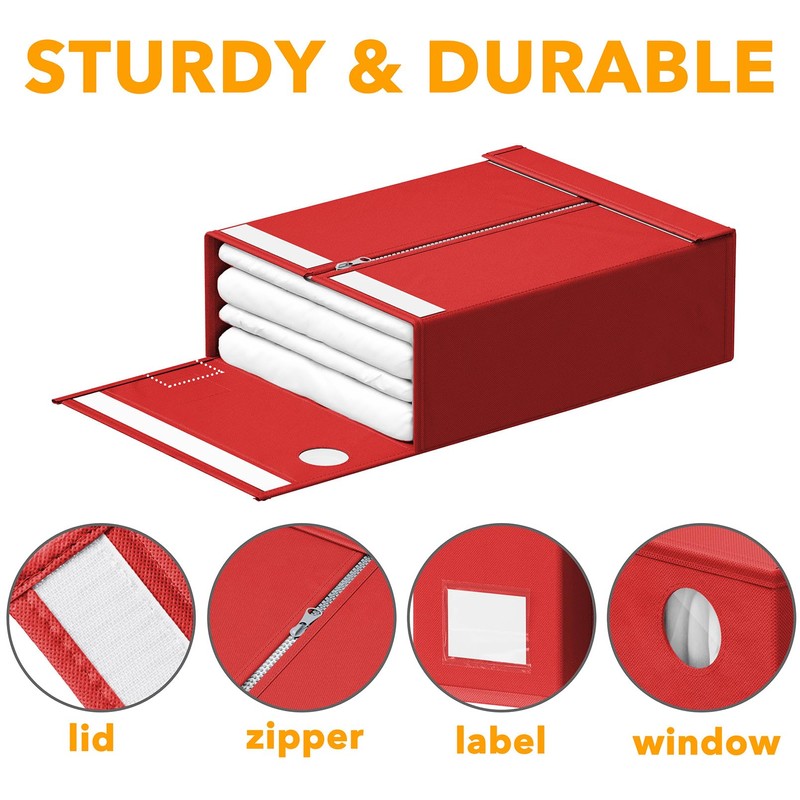 - EASY TO FOLD AND USE - Each foldable bedding sheet set organizer is super easy to use; You can fold your sheets first and put them in the center, then zip, close, label and finish