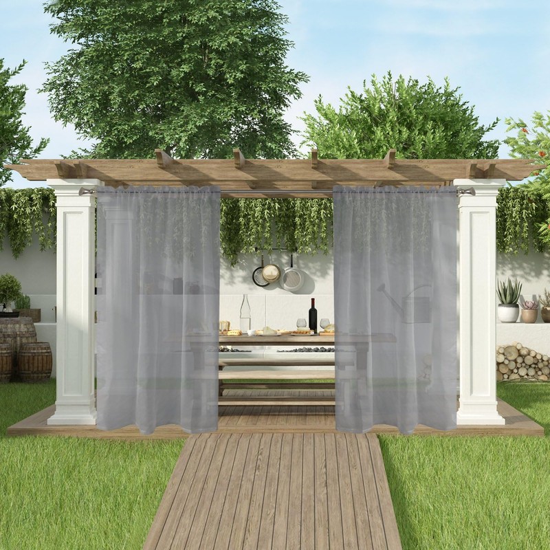 - WATERPROOF SHEER FABRIC: SpaceDresser outside curtains are made of 100% polyester fabric with the same color on the front and back.The outdoor sheer drapes add more romance and elegance to your decor.