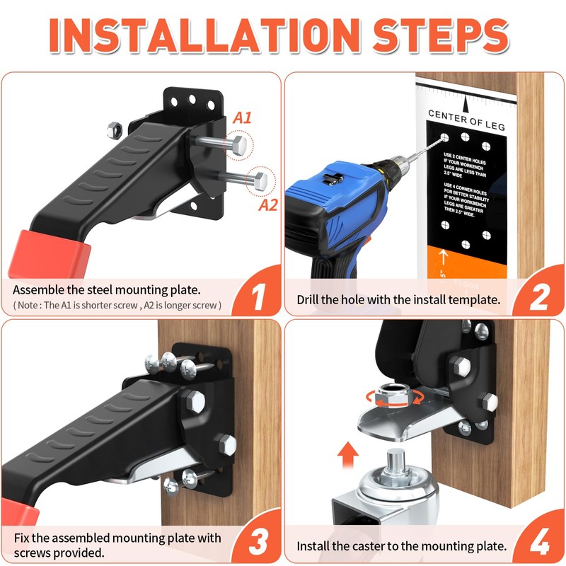 - ➤ Package Included - The workbench retractable casters include 4 workbench caster assemblies, all the necessary mounting hardware and instructions.