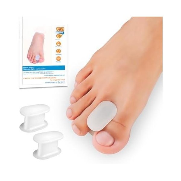 EASY TO USE-- Simply put the gel spacers on the that need to be separated, make sure it fits firmly and comfortably between the . It is recommended to wear the separator for 10-30 minutes a day for the first time, and then increase the wearing time as you get to it, which can be adjusted according to your comfort level.