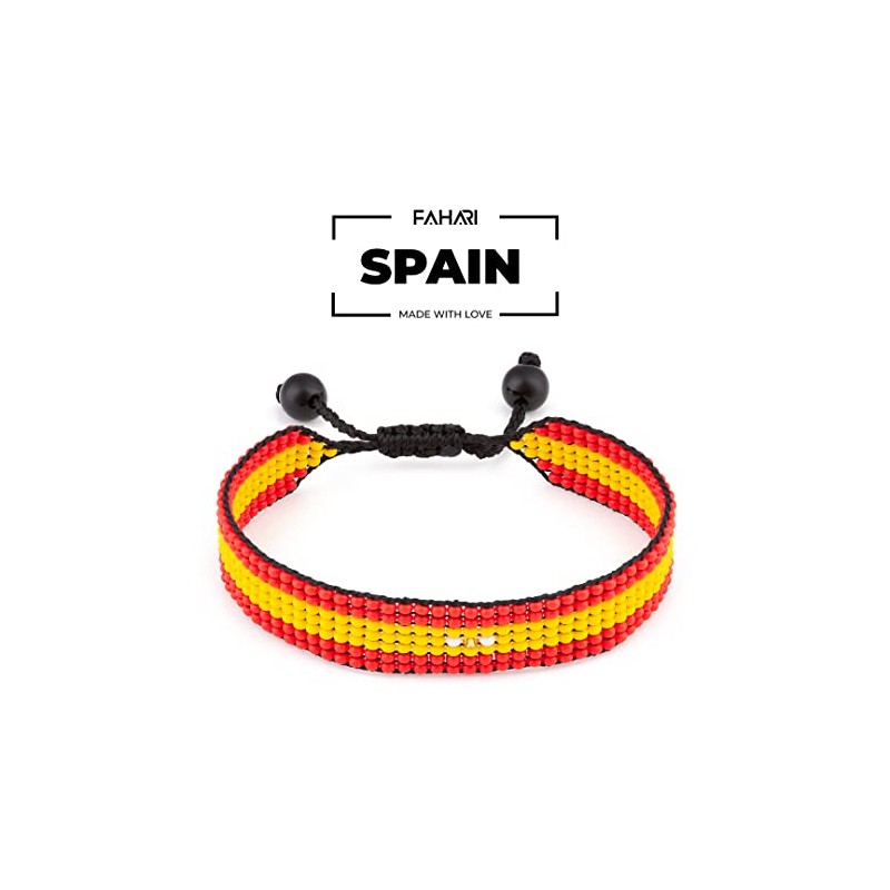 Spain Flag Bracelet: Handmade Bracelet,Adjustable Beaded Boho-Style Rope Bangle with Patriotic Design