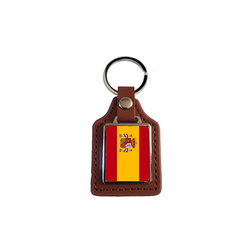 Spain With Crest Brown Leather Square Key Fob And Gift Bag