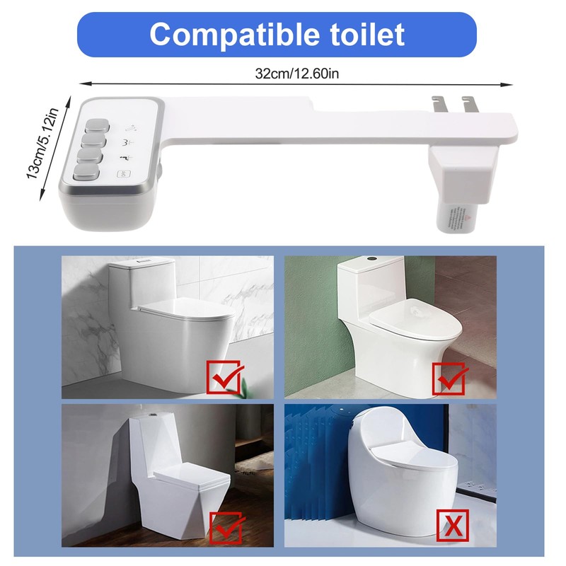 - DOUBLE NOZZLE DESIGN: Enjoy the dual nozzles with two spray modes for thorough cleaning of the front and back. The intuitive push button design ensures effortless use and maximum hygiene.