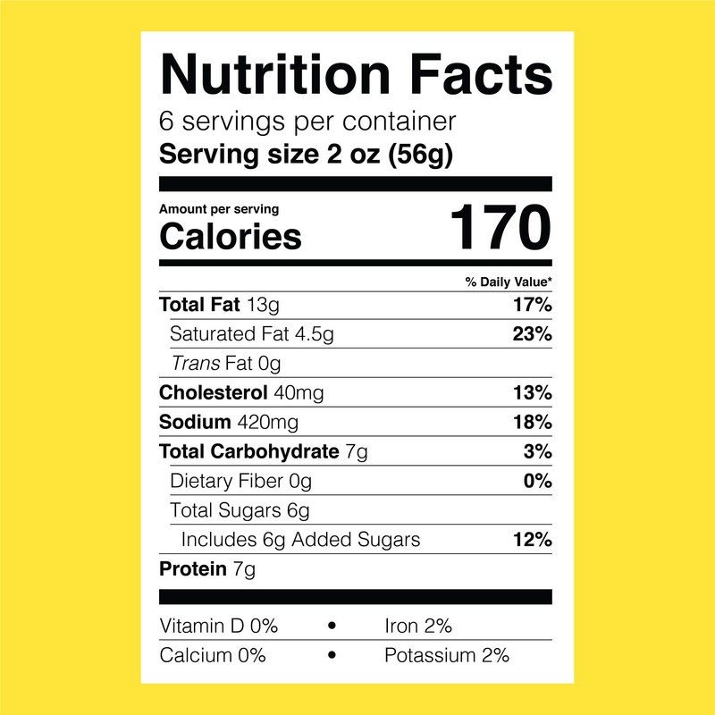 - 0 grams trans fat per serving; 6 grams sugar per serving