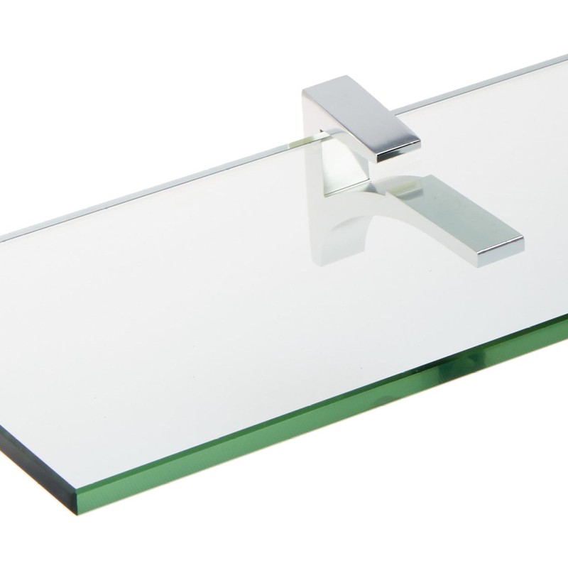 Purchasing glass shelves has never been easier. First pick your size, and then pick the finish for the bracket. Besides being the perfect clutter free look, installation of this glass shelf is simple. No longer hassle with intricate installations involving cutting into the wall or caulking. Simply attach the bracket to the wall then insert the glass shelf. Floating glass shelves are a great way to decorate any wall. Glass shelves are the perfect solution for storage of all kinds. Floating glass shelves will give your room a fresh clean look. They are great with any décor simply because they are glass. Glass shelves can be arranged in different configurations. They can be grouped together or used alone. With glass shelves the design possibilities are endless.