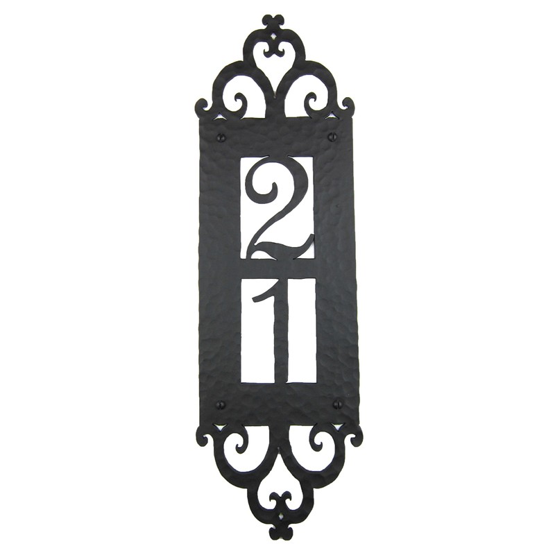 Spanish Mediterranean Custom Hammered Vertical Wrought Iron Address Plaque AP...