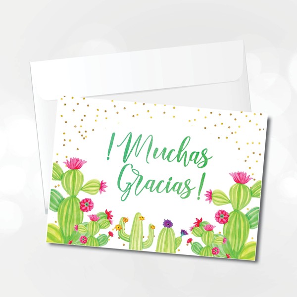 Spanish Thank You Cards with Envelopes - Pack of 25 - Cactus