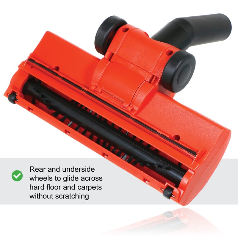 The powerful brushroll turbine on this wheeled floor tool offers exceptional performance, pick-up and control, making light work of pet hairs and stray carpet threads. This brush is far more effective than a standard floor brush due to the enhanced suction that is produced by the air driven turbine.