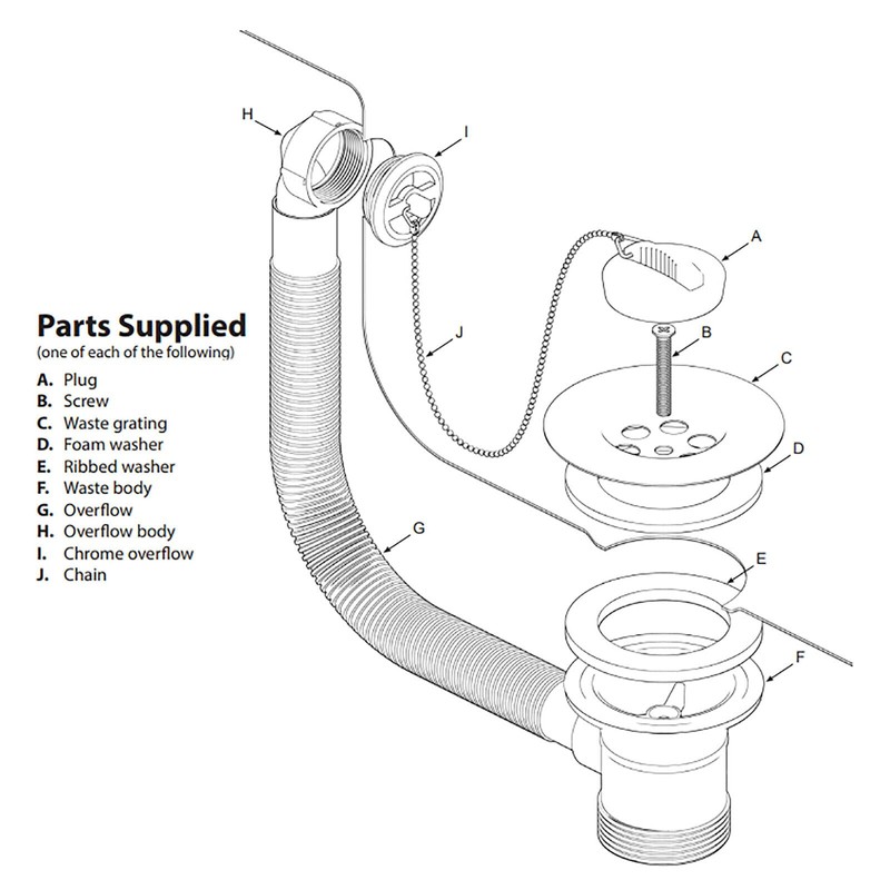 - Overflow Cover: Round (Chrome Plated) -- Flexible Overflow Pipe