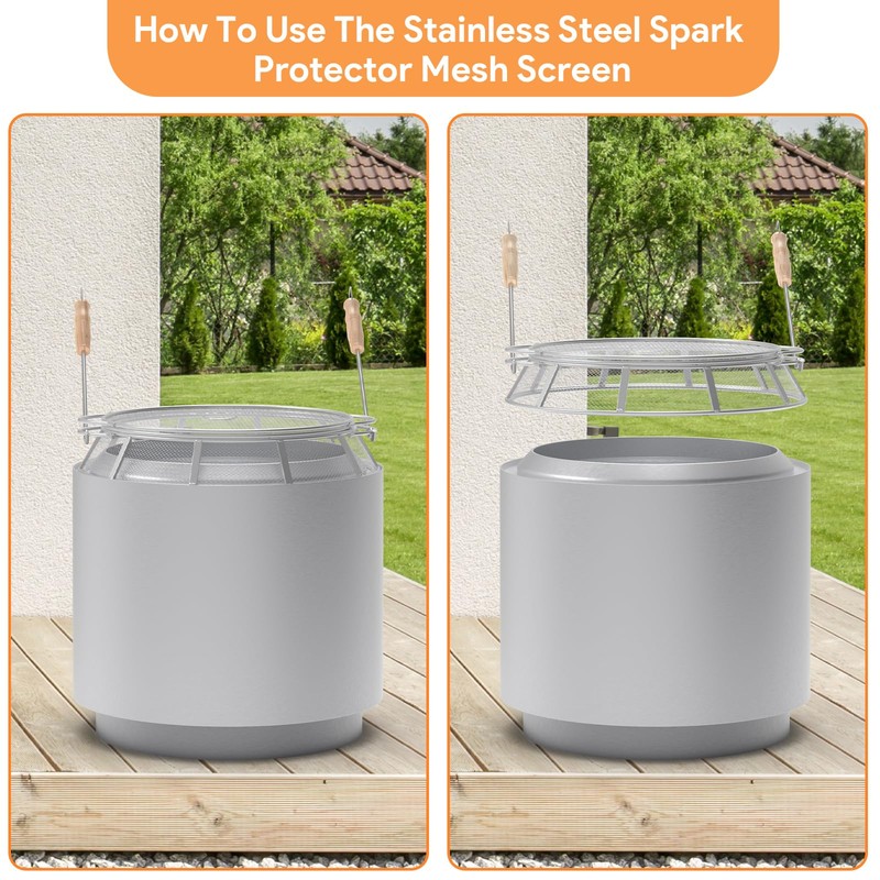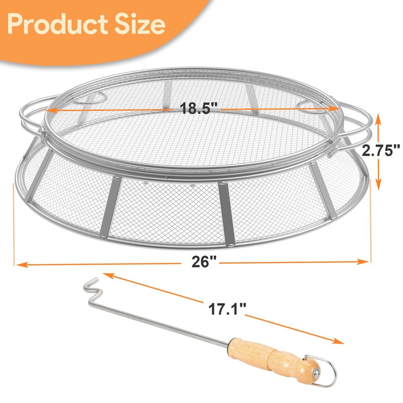 Spark Protector Mesh Screen for Solo Stove Yukon 27 Inch, Stainless Steel Fire Pit Spark Screen Mesh Fire Pit Spark Protector with Sticks Poker for Solo Stove Yukon Accessories