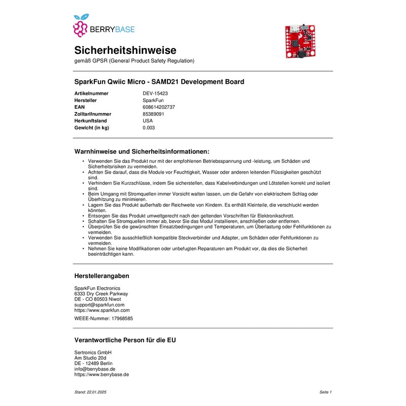 | Manufacturer: | Sparkfun |
