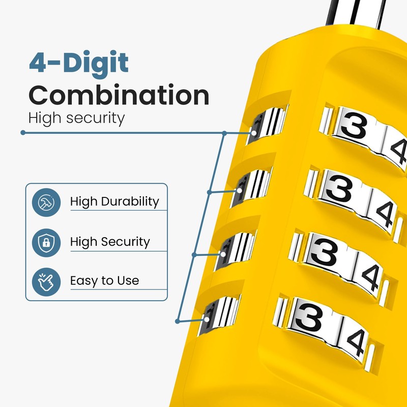 - HIGH SECURITY, PEACE OF MIND: Secure your belongings with our premium combination lock featuring 10,000 unique combinations,delivering unmatched security compared to standard 3-digit lock. Perfect for your gym locker, school and shed.