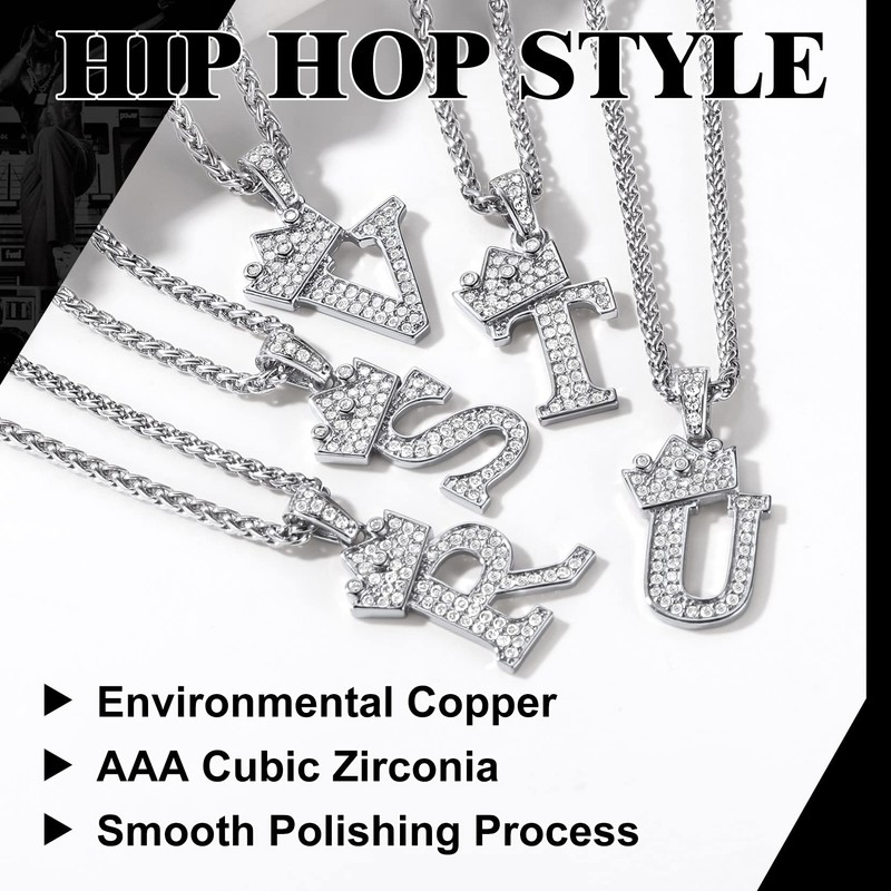 - ♛♛♛Design: Bling brilliant cut simulated diamond cubic zirconia crown alphabet necklace for men women,capital letter pendant with wheat chain.Initial necklace is always connected to names,you can give it to someone with this letter in his/her name,it will be a great gift.