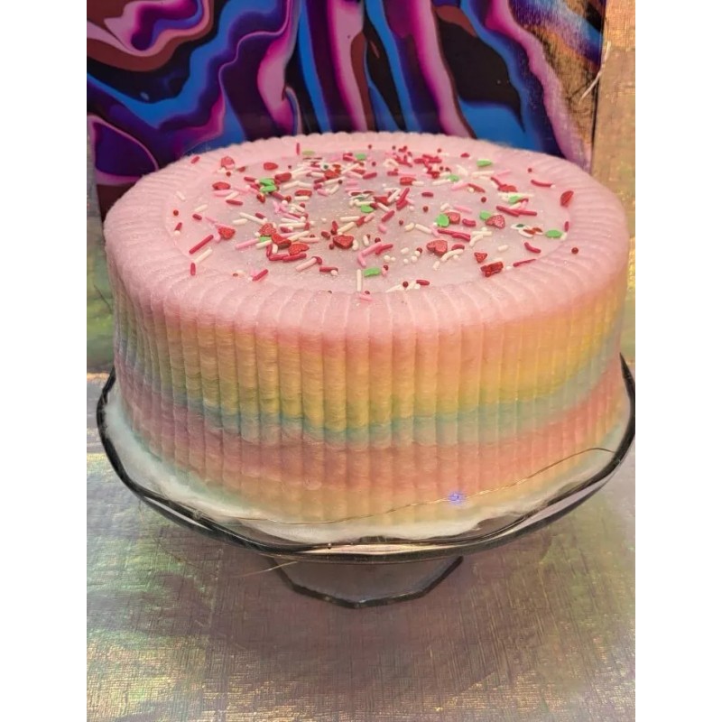 Indulge in the sweet and fluffy goodness of the "SparkleCANDYCloud" Cotton Candy Cake. This delightful treat comes in a 11 X 3.5 inch size and serves 10 people. The cake is made with premium quality sugar and flavored with the classic cotton candy flavor.