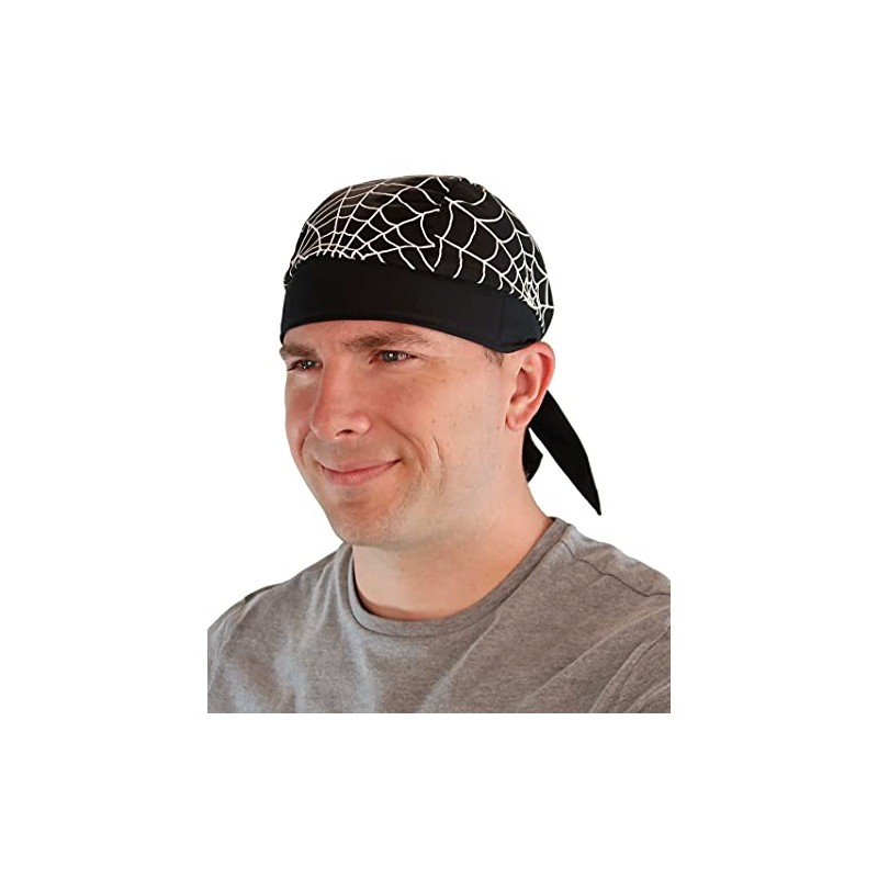 Sparkling EARTH Skull Caps Headwraps Doo Rags Do Rag - White Spider Webs