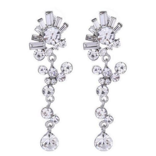 Sparkly dangly silver-plated diamante crystal earrings