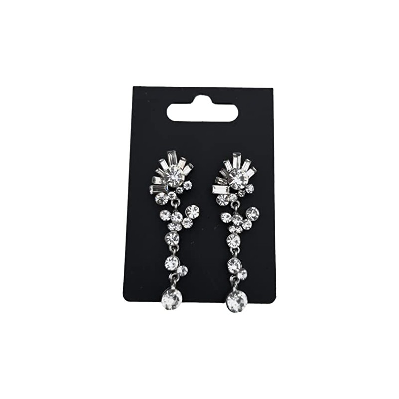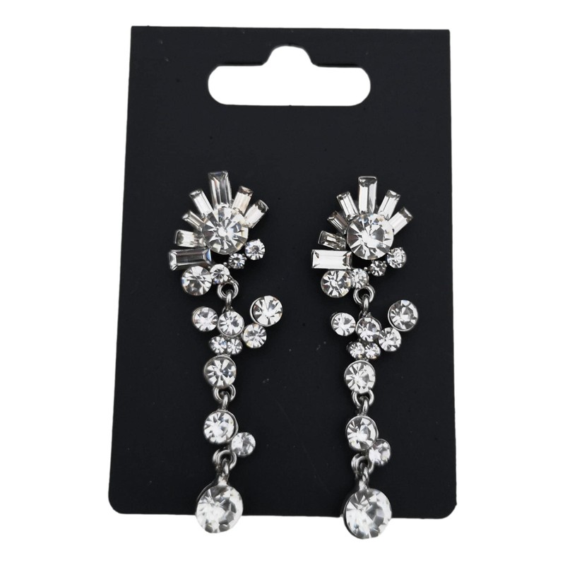 A pair of diamante crystal silver-plated dangly stud drop earrings, supplied on cello-wrapped card packaging.