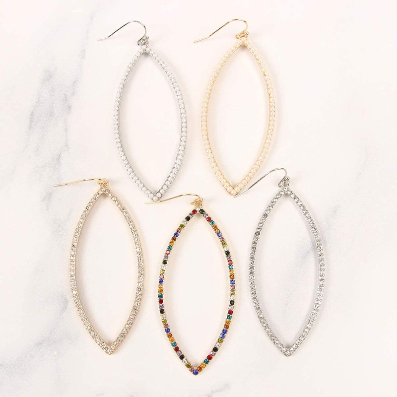 - PRODUCT DETAILS - Go glam with these high-polished rhinestone earrings. They catch the light beautifully, adding sparkle to your everyday outfits! MATERIALS: Base Metal, Glass Stones. CARE INSTRUCTIONS: Limit exposure to water, perfume or body cream to extend the life of your jewelry