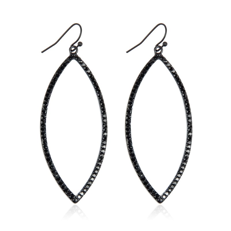 Sparkly Rhinestone Lightweight Geometric Hoop Drop Earrings - Teardrop, Pear, Oval, Marquise, Circle, Multi Cubic Crystal, Acrylic Pearl Dangles (Pointy Leaf - Black)