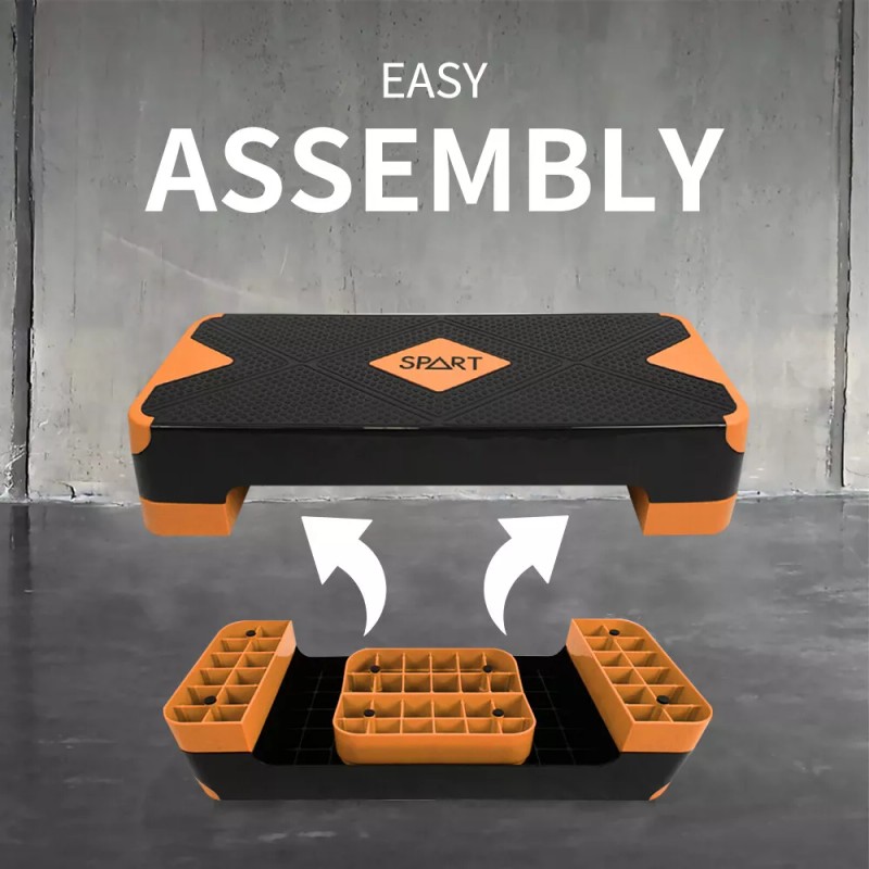 ANTI-SLIP SURFACEWell-made platform features anti-slip surface for maximized comfort and safety. The top surface is easy and comfortable on the hands, feet, and back. | 3 LEVEL OF ADJUSTABLE HEIGHTSThis aerobic stepper has 3 levels of height: 4-inches, 6-inches and 8-inches.You can easily increase or decrease the intensity of your workout by adjusting platform height from 4” to 8”. | ANTI-SKID RUBBER FEETSPART step platform comes with nonskid feet on each riser to prevent it from sliding during exercising and scratching floor. | VERSATILE STEPPER PLATFORMThis aerobic stepper is suitable for cardio workout, fitness, low & high-impact. Can combine with other fitness tools to get extra burning fat workouts. |
