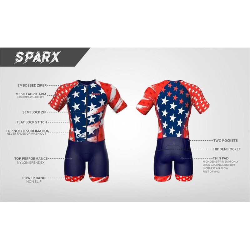 Sparx Mens Elite Aerosuit Triathlon Suit Mens Short Sleeve Tri Suit Skinsuit (US Flag, Medium)