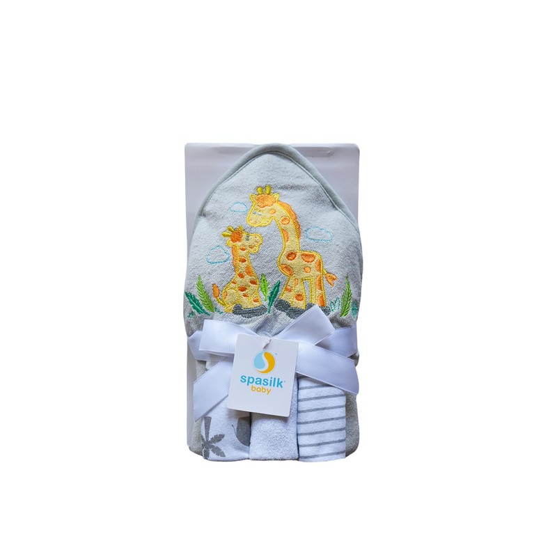 Spasilk - Toalla de baño con Capucha y 3 paños de baño para bebé, Talla única, Jirafa Gris