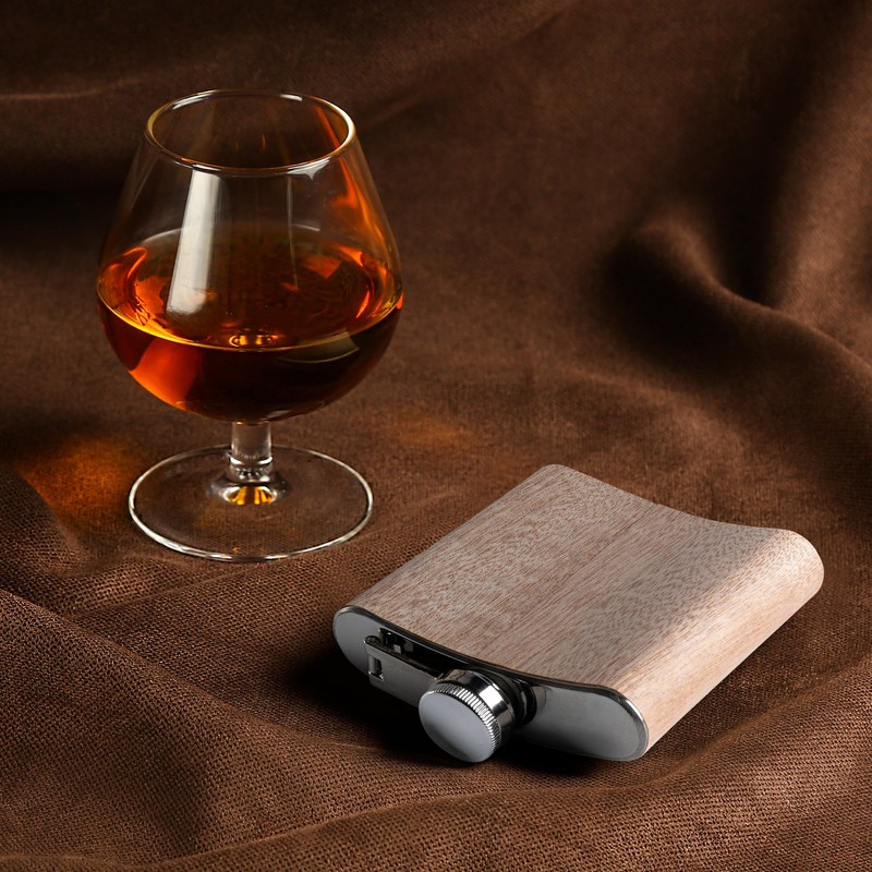 SPDYCESS Stainless Steel Hip Flask Wooden 6 oz Men's Hip Flask with Funnel Portable Hip Flask from Alcohol Gift for Hiking Climbing Fishing