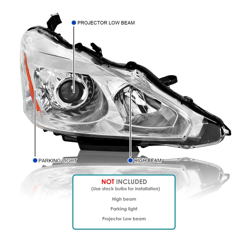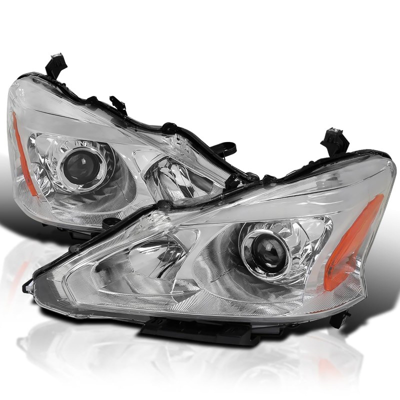 Spec-D Tuning Chrome Projector Headlights Compatible with 2013-2015 Nissan Altima Sedan, Left + Right Pair Headlamps Assembly