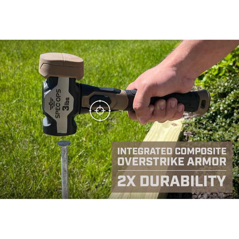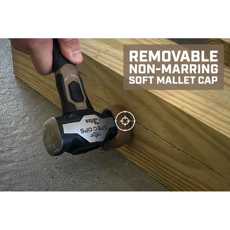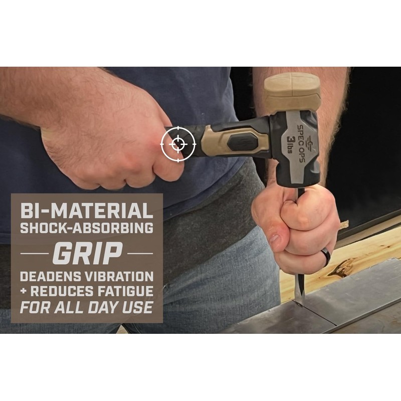 Spec Ops Tools Drilling Hammer, 3 lbs Sledge with Fiberglass Handle & Soft Mallet Face