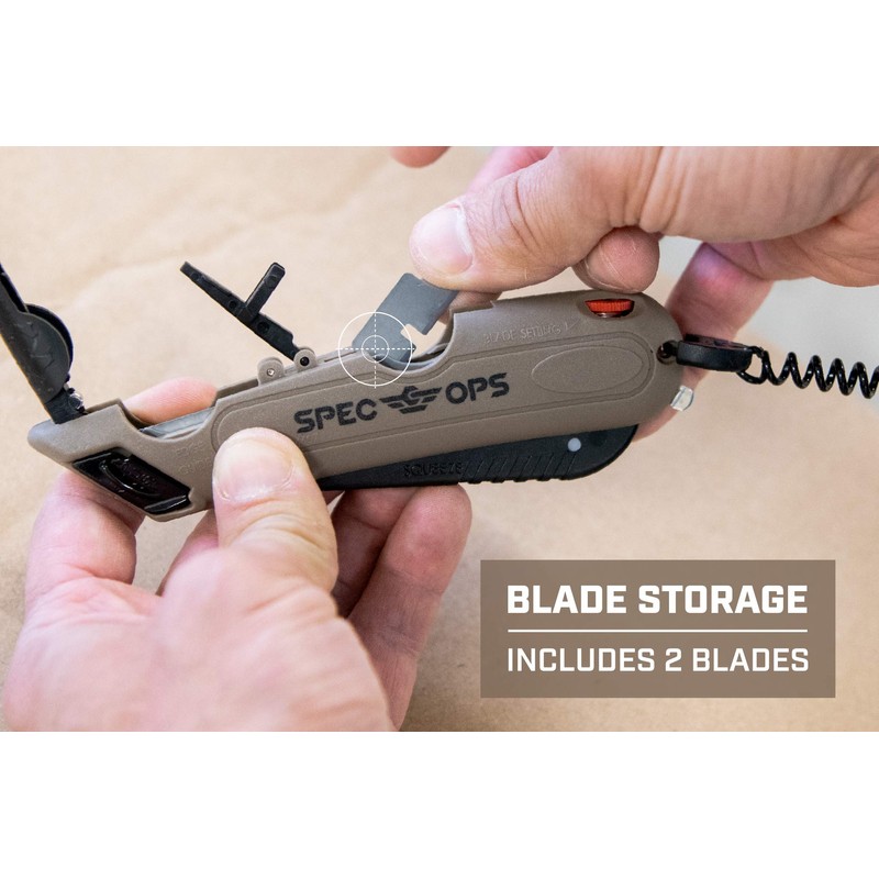 Spec Ops Tools Safety Knife Box Cutter, Includes Holster & Lanyard, 3% Donated to Veterans, black/tan