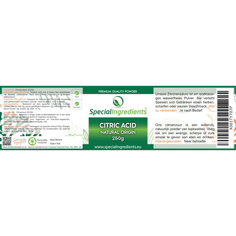 Special Ingredients Citric Acid 250 g Pure Food Grade 100% Pure Powder (German Labels and Instructions)