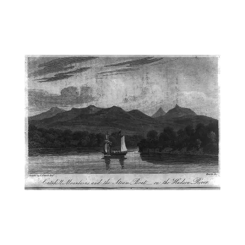 Special Label Photo:Catskill Mountains and the steam boat - on the Hudson River 1873