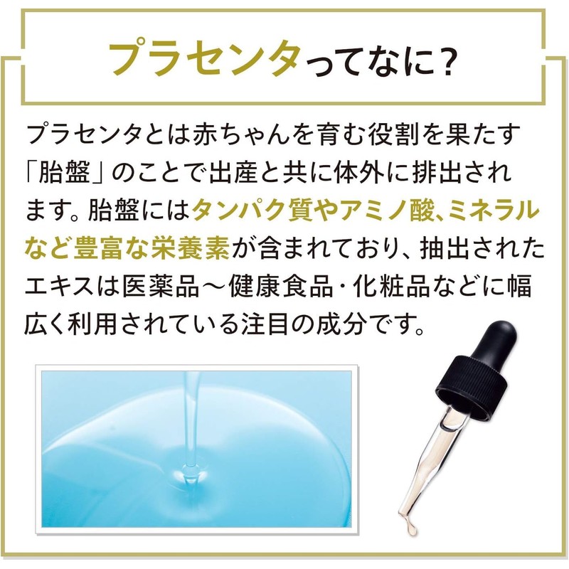 - (100% W Placenta produced in Hokkaido) We brought out the features of thoroughbread (horse) and whey pig placenta that is grown healthily in Hokkaido. A completely new W placenta solution for bright, transparent skin
