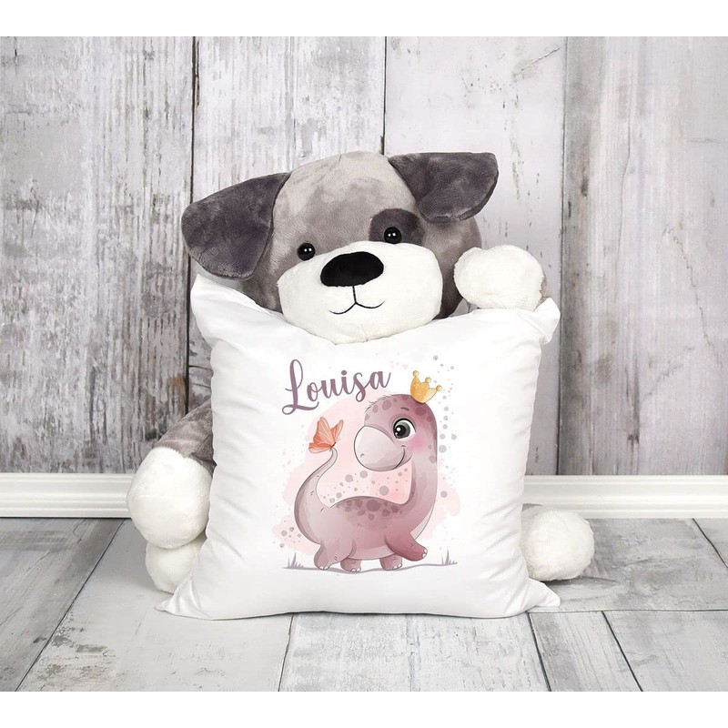 - Easy to cuddle, our little dinosaur! With his little friend, the butterfly, he explores the world curiously. You are looking for a cute name gift for babies for birth or birthday. With this cushion cover, you can do everything right