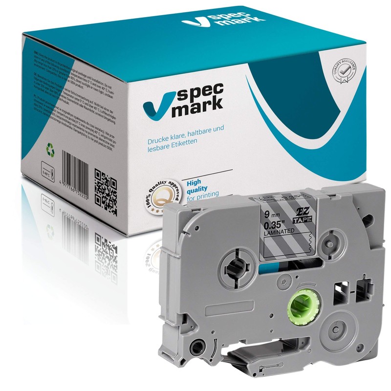 Clear ribbon, black writing. Laminated self-adhesive tape TZe-121 (AZe-121 EZe-121 TZ-121 TZ2-121) compatible with all Brother P-touch devices. Specmark: high quality replacement for label tape Brother TZe, print clear, durable and readable labels. Compatible with Brother P-touch printers. 24-month warranty. Certified Manufacturer - ISO 14001, ISO 9001 SGS and RoHS compliant product