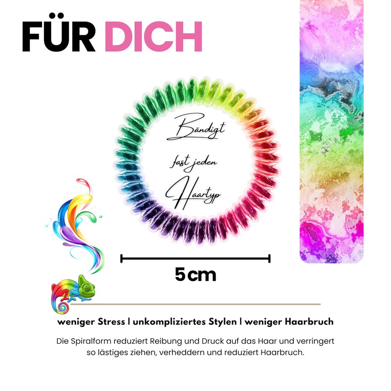 - 💃 Praktisch und Vielseitig einsetzbar: Geeignet für alle Haartypen. Kinderleicht Frisuren kreieren. Egal ob Pferdeschwanz, Dutt oder Half-Up-Style. Unser Spiral Haargummi hält deine Haare unauffällig und zuverlässig zusammen.