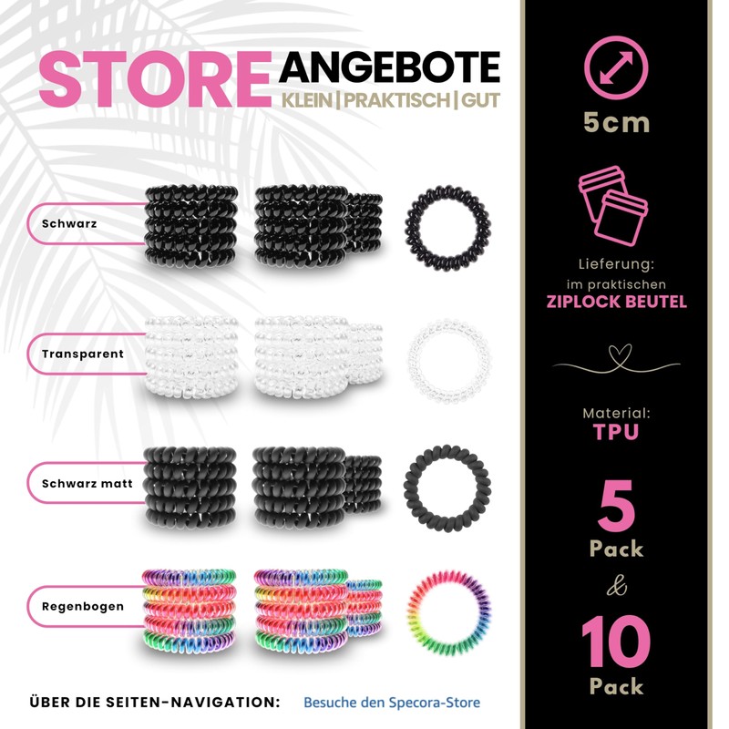 - ✅ Hochwertiges Material: Hergestellt aus TPU – langlebig, wasserfest und hygienisch. Nutze den Spiral Haargummi von Specora täglich gerne auch beim Sport, Schwimmen, Tanzen, im Gym oder für die perfekte Business-Frisur