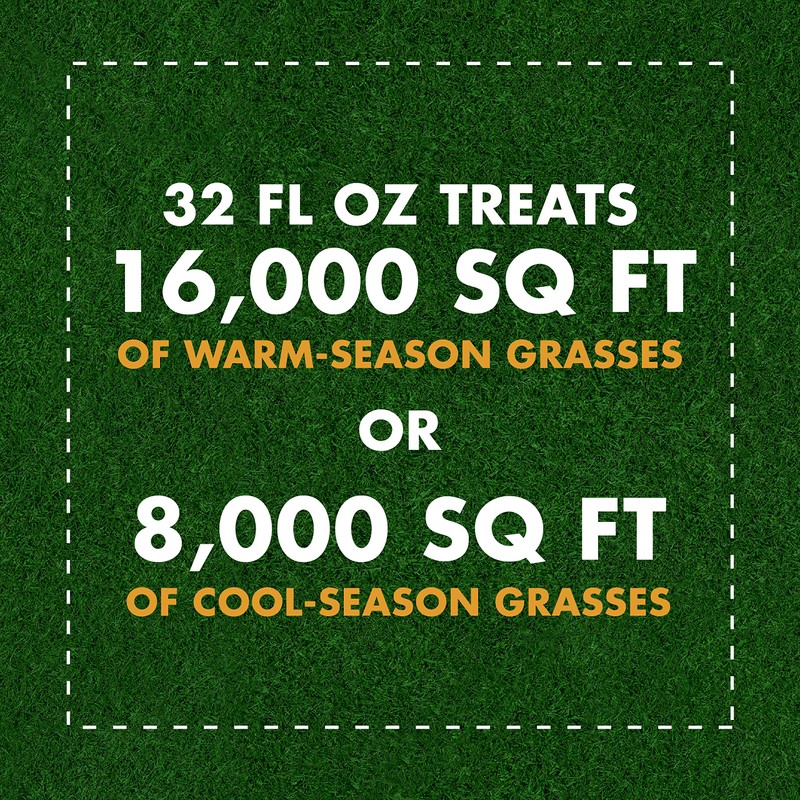 • COVERAGE: 32 ounce bottle treats up to 16,000 square feet and 40 ounce bottle treats up to 20,000 square feet.