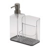 Spectrum Diversified Hexa Sponge & Brush Kitchen Organizer with Refillable Soap Pump, Sponge & Dish, Easy-Clean Sink Organization & Dish Brush Holder with Removable Base, Clear & Gray