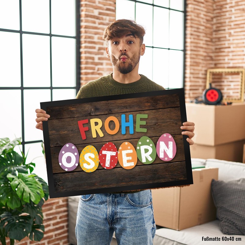 - Get this high-quality, lovingly designed and printed Easter door mat now! The robust quality guarantees durability and the cheerful colours bring Easter joy right to your door. Start the Easter season in style and warm!